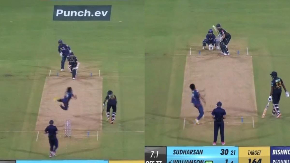 LSG vs GT IPL Match: लखनऊ सुपर जॉयंट्स के स्पिनर रवि बिश्नोई ने अपनी गूगली बॉल पर दिग्गज कीवी बैटर को ऐसा फंसाया कि सामने बिश्नोई हवा में बंदर की तरफ उछलकर शानदार कैच पकड़ा।