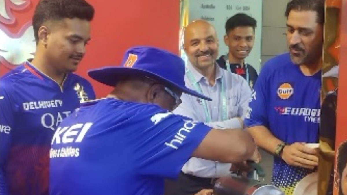 MS Dhoni Visits RCB Dressing Room: महेंद्र सिंह धोनी शनिवार को आरसीबी के खिलाफ होने वाले मैच से पहले रॉयल चैलेंजर्स बेंगलुरू के ड्रेसिंग रूम में पहुंच गए। यहां धोनी का स्वागत चाय से हुआ। इसका वीडियो वायरल हो रहा।