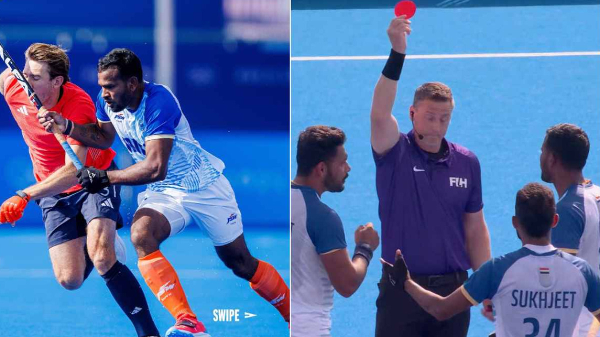 Paris Olympics: पेरिस ओलंपिक में भारतीय हॉकी टीम जबरदस्त प्रदर्शन कर रही है। रविवार को भारत ने ग्रेट ब्रिटेन के पेनल्टी शूटआउट में 4-2 से हरा दिया। भारत-ब्रिटेन मैच में भारत की तरफ से पेनल्टी शूटआउट में कप्तान हरमनप्रीत सिंह, सुखजीत, ललित और राजकुमार ने गोल किया। इस जीत के हीरो गोलकीपर पीआर श्रीजेश रहे। हालांकि भारत के डिफेंडर अमित रोहिदास को रेड कार्ड मिला। इससे उन्हें मैच से बाहर कर दिया गया। इसके बाद उन पर एक मैच का बैन में लगा दिया गया।