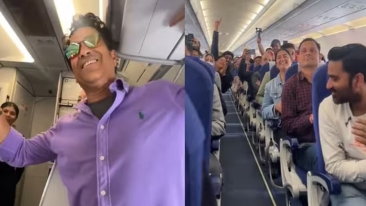 When the entire flight turns into a stadium with Sachinnn Sachinnn Chants 🥳 @sachin_rt pic.twitter.com/fpXiDTvARA