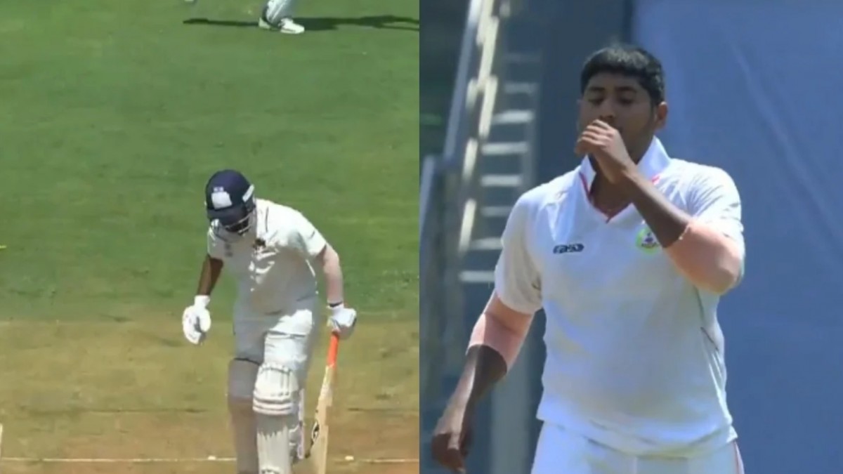 पृथ्वी शॉ को यश ठाकुर ने एक अंदर आती गेंद पर क्लीन बोल्ड कर दिया। शॉ सिर्फ एक चौका लगा पाए। पहली पारी में पृथ्वी ने जरूर 46 रन बनाए थे। लेकिन, दूसरी पारी में बड़ा स्कोर नहीं खड़ा कर पाए। विदर्भ की तरफ से पारी का 7वां ओवर डालने के लिए यश ठाकुर आए। यश के ओवर की दूसरी गेंद तेजी से अंदर की तरफ आई। जब तक पृथ्वी बल्ला नीचे लाते, तबतक गेंद अपना काम कर चुकी थी। बोल्ड होने के बाद पृथ्वी के चेहरे का रंग उड़ गया था।