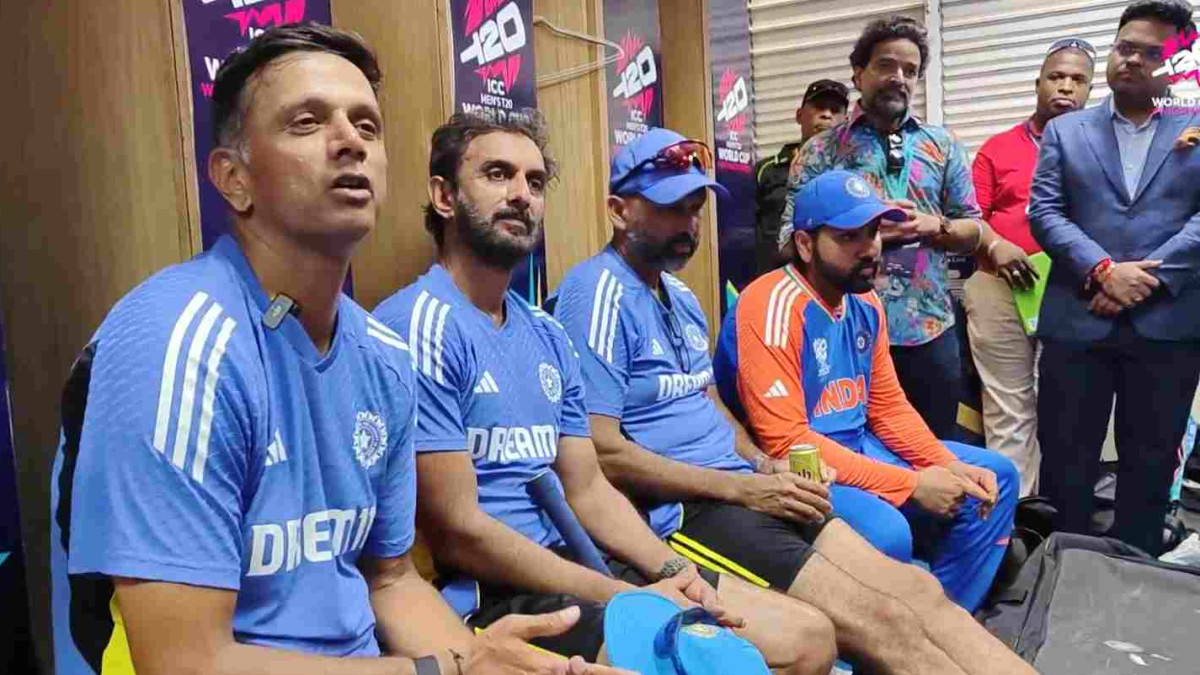 Rahul Dravid Farewell Speech: टीम इंडिया को 17 सालों के बाद टी20 विश्वकप जिताने में अहम भूमिका निभाने वाले हेड कोच अब टीम के साथ नहीं दिखेंगे। उनका कार्यकाल खत्म हो गया है। टीम इंडिया के ड्रेसिंग रूम में मुख्य हेड कोच राहुल द्रविड ने विदाई स्पीच दी।