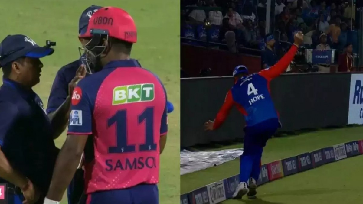 संजू सैमसन के विकेट पर जो विवाद हो रहा, वो राजस्थान रॉयल्स की पारी के 16वें ओवर की है। इस ओवर में संजू ने पेसर मुकेश कुमार की गेंद पर लॉन्ग ऑन की तरफ जोरदार शॉट मारा। ऐसा लगा कि गेंद सीधा सीमा रेखा के पार जाकर गिरेगी। लेकिन, शाई होप अचानक वहां पहुंच गए और उन्होंने खुद को संतुलित करते हुए गेंद को पकड़ लिया। रीप्ले से पता चला कि वो बाउंड्री रोप के बिल्कुल करीब थे। लेकिन, उसे छुआ नहीं था।