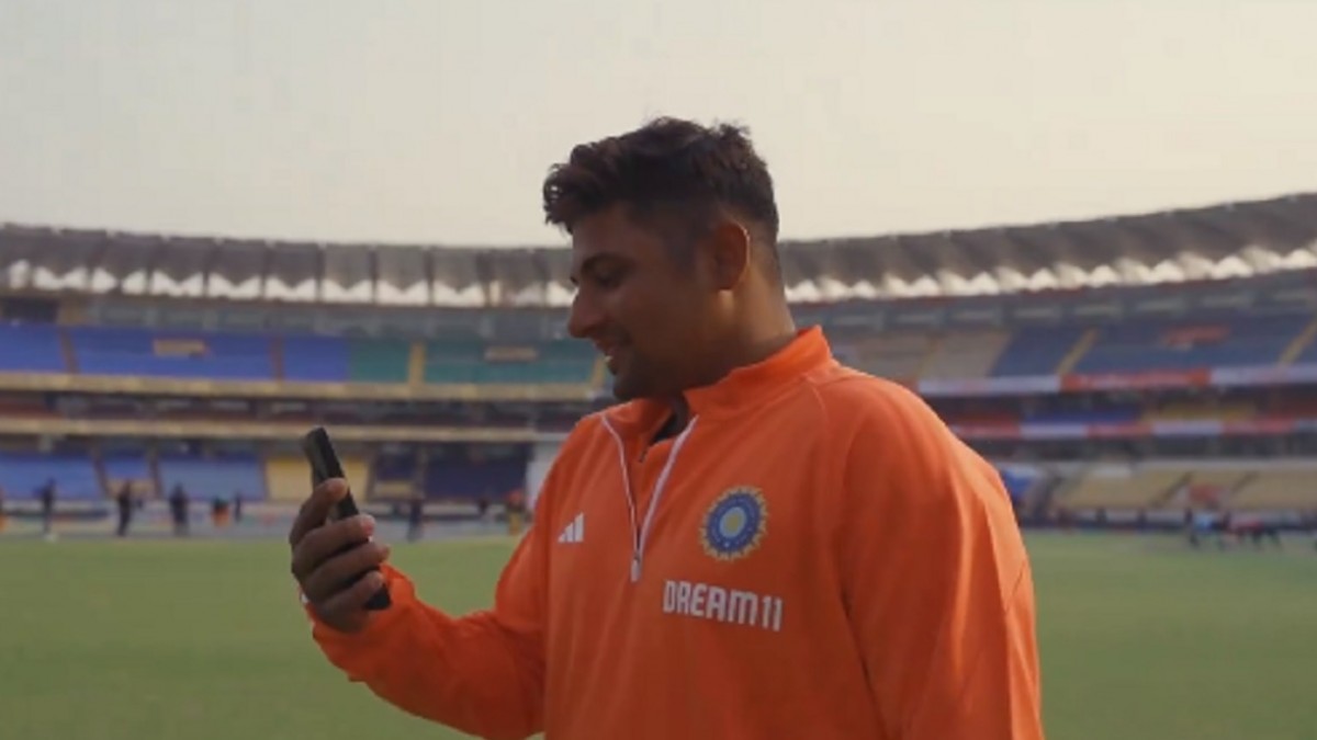 Sarfaraz Khan Got Surprise VIDEO Call From Musheer Khan: इंग्लैंड के खिलाफ गुरुवार से राजकोट में शुरू हुए तीसरे टेस्ट में सरफराज खान ने डेब्यू किया और उन्होंने अपनी पहली ही टेस्ट पारी में अर्धशतक ठोक दिया। सरफराज अच्छी लय में नजर आ रहे थे। ऐसा लग रहा था कि वो डेब्यू पर शतक ठोक देंगे। लेकिन, रवींद्र जडेजा की एक गलती के कारण वो रन आउट हो गए। हालांकि, सरफराज ने 62 रन की पारी के दौरान ये दिखा दिया कि उनमें कितना दमखम है।