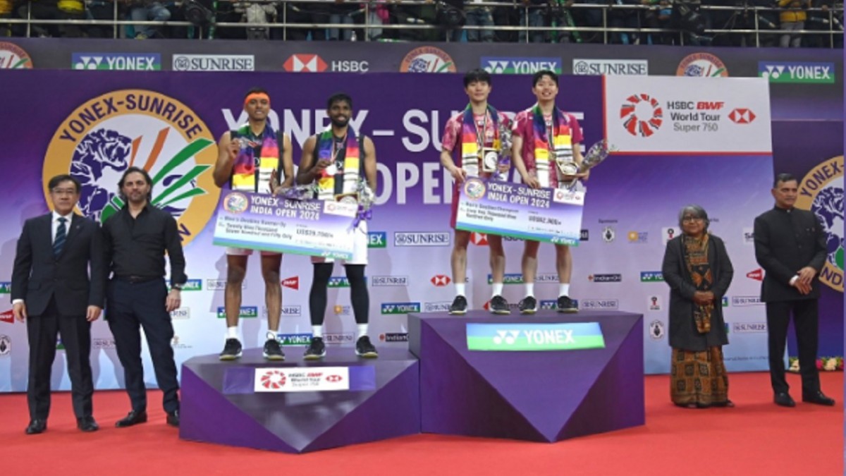 India Open 2024: सात्विकसाईराज रंकीरेड्डी और चिराग शेट्टी की भारतीय जोड़ी इंडिया ओपन बैडमिंटन टूर्नामेंट का फाइनल हार गई। खिताबी मुकाबले में कोरिया की वर्ल्ड नंबर1- जोड़ी ने दोनों को हराया।