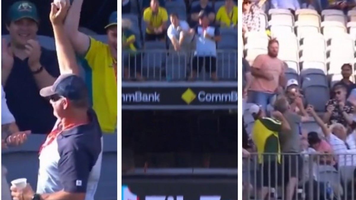 Some seriously good catching from the Perth fans, with a SECOND one-handed crowd catch #AUSvWI pic.twitter.com/SmvgtfVJ6s