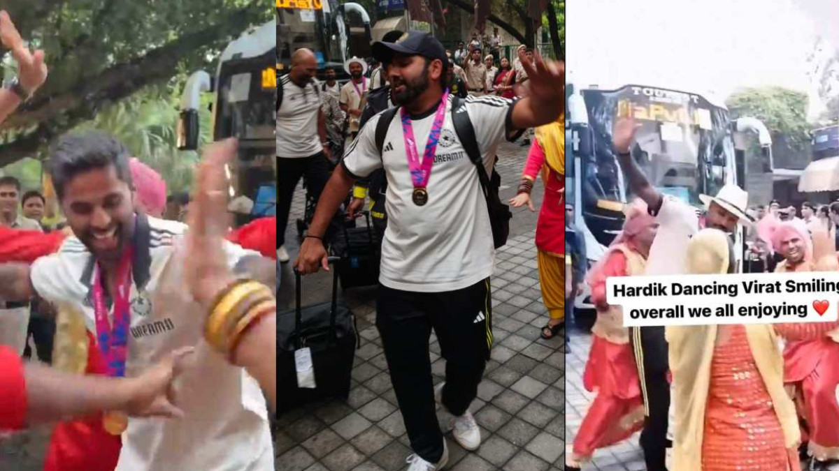 टीम इंडिया एयरपोर्ट से होटल आईटीसी मौर्या पहुंची। वहां पर भी पहले से फैंस मौजूद थे। टीम की बस को देख फैंस ने टीम इंडिया को चीयर करना शुरू कर दिया। वहीं, बस से नीचे उतरते ही वहां ढोल-ताशे बजने लगे। इस पर टीम के कई खिलाड़ी डांस करने लगे। सूर्यकुमार यादव ने ढोल की थाप पर जमकर भांगड़ा किया। उन्होंने अपने साथ यशस्वी जायसवाल को भी मिला लिया।