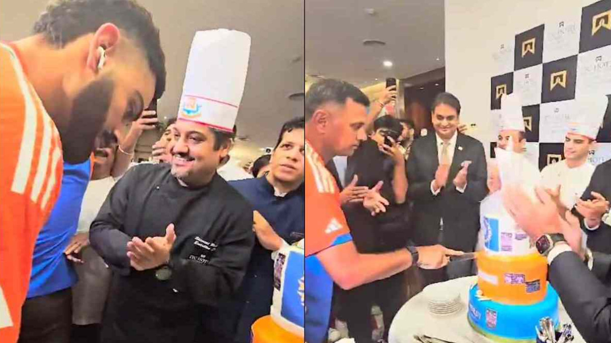 वहीं, फैंस के इस प्यार को देख खिलाड़ी भी काफी खुश नजर आ। होटल के बाहर सूर्यकुमार यादव, रोहित शर्मा और यशस्वी जायसवाल ने जमकर भांगड़ा डांस किया।कुछ देर आराम करने के बाद खिलाड़ियों ने केक काटा। यह केक विश्वकप ट्रॉफी की थीम पर बनाया गया था। रोहित शर्मा, विराट कोहली और राहुल द्रविड ने केक काटा। दोनों तरफ फैंस खड़े थे और बीच से खिलाड़ी बाहर निकले। विराट कोहली फैंस की रिक्वेस्ट पर केक काटने आए। उस दौरान कोहली-कोहली के नारे लगे।
