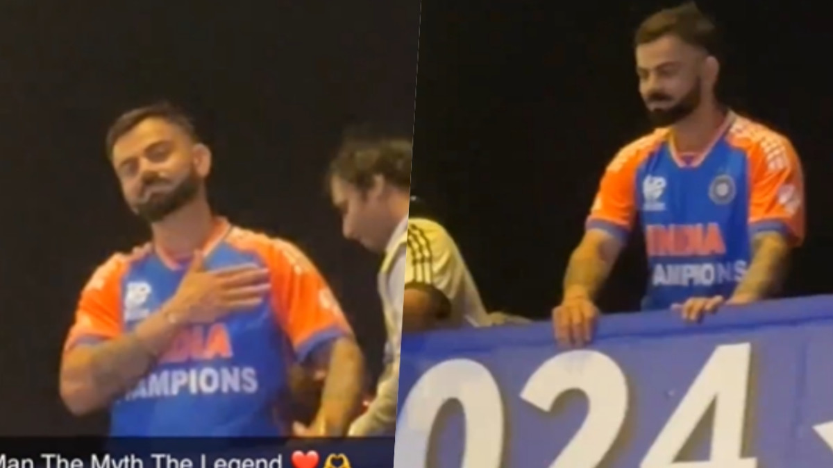 T20 World Cup 2024: टी20 विश्व कप 2024 में चैंपियन बनी टीम इंडिया मुंबई में विजय जुलूस निकाल रही है. मरीन ड्राइव से लेकर वानखेड़े स्टेडियम तक रोहित सेना का जोरदार स्वागत हो रहा है. इस दौरान विराट कोहली ने फैंस को फ्लाइंग किस दी, जिसका वीडियो सामने आया है.