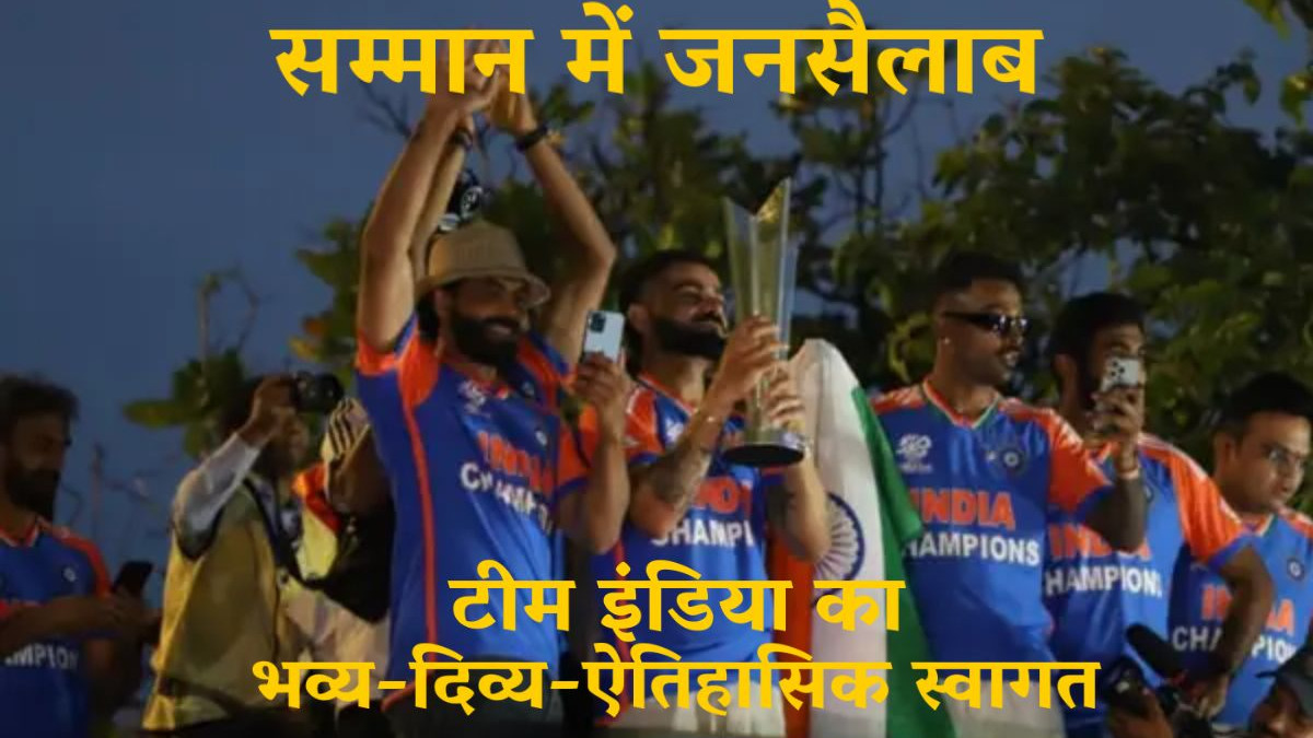 इससे पहले T20 वर्ल्ड कप में शानदार जीत के बाद टीम इंडिया जब वतन लौटी, तो दिल्ली एयरपोर्ट पर उनका जोरदार स्वागत किया गया। फैंस ने जमकर जयकारे लगाए और खिलाड़ियों का उत्साह बढ़ाया। हर तरफ भारतीय तिरंगे लहरा रहे थे और लोग अपने चहेते खिलाड़ियों के साथ सेल्फी लेने के लिए बेताब दिखे। इस मौके पर एयरपोर्ट पर सुरक्षा के कड़े इंतजाम किए गए थे।
