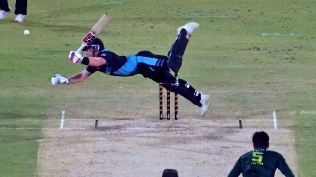 Tim Seifert Viral Video: न्यूज़ीलैंड के बैटर टिम सिफर्ट ने पाकिस्तान के खिलाफ पांचवें टी20 में फील्डिंग नहीं बल्कि बैटिंग के दौरान डाइव लगा दी। इसका वीडियो वायरल हो रहा।