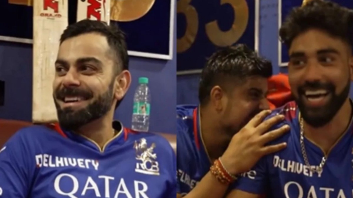 Mohammed Siraj Virat Kohli Funny Video : दिल्ली कैपिटल्स के खिलाफ मैच जीतने के बाद रॉयल चैलेंजर्स बेंगलुरु के ड्रेसिंग रूम का एक वीडियो सामने आया है, जिसमें विराट कोहली ने मोहम्मद सिराज की मौज ले ली।