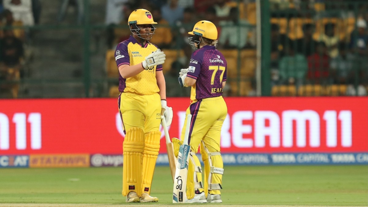 162 रनों के लक्ष्य का पीछा करने उतरी यूपी वॉरियर्स (UPW) की सलामी जोड़ी ने आते ही बड़े-बड़े शॉट लगाना शुरू किए। कप्तान एलिसा हीली और किरण नवगिरे ने पहले विकेट के लिए 55 गेंदों पर 94 रन जोड़े। 10वें ओवर की पहली गेंद पर किरण पवेलियन लौटीं। उन्होंने 6 चौकों और 4 छक्कों की मदद से 31 गेंदों पर 57 रन की पारी खेली। अमेलिया केर की गेंद पर यास्तिका भाटिया ने उन्हें स्टंपिंग किया। अगले ही ओवर में UPW को 2 झटके लगे। 11वें ओवर की दूसरी गेंद पर इस्सी वोंग ने ताहलिया मैकग्राथ को LBW आउट किया। ताहलिया मैकग्राथ ने 4 गेंदों पर 1 रन बनाया। ओवर की चौथी गेंद पर एलिसा हीली ने साइका इशाक को कैच थमा दिया। हीली ने 5 चौकों की बदौलत 29 गेंदों पर 33 रन बनाए।
