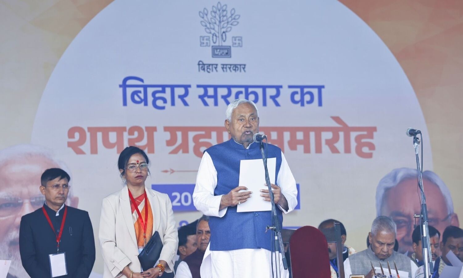 नीतीश कुमार 10वीं बार मुख्यमंत्री पद की शपथ लेते हुए।