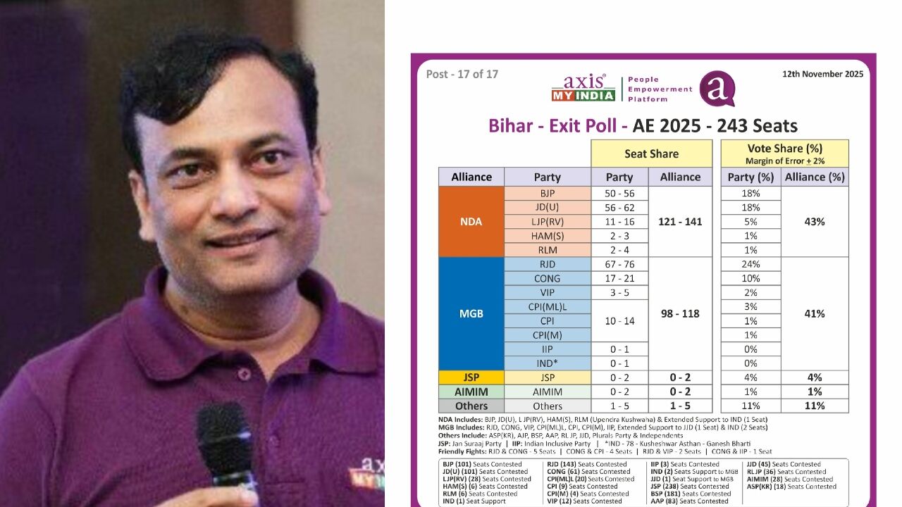 एक्जिट पोल: Axis My India के सर्वे में NDA को मामूली बढ़त, बिहार में फोटो फिनिश की संभावना
