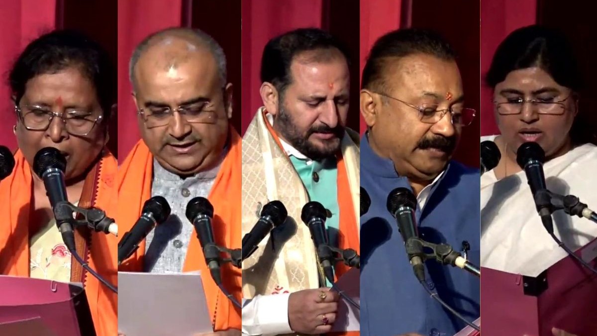 सबसे पहले बीजेपी की विधायक रेणु देवी ने मंत्री पद की शपथ ली। इसके बाद मंगल पांडेय और नीरज सिंह बबलू ने मंत्री पद की शपथ ली। नीरज सिंह बबलू ने मंत्री पद की शपथ लेने के बाद जय श्रीराम का नारा लगाया। बीजेपी से नितीन नवीन, नीतीश मिश्रा, दिलीप जायसवाल, केदार प्रसाद गुप्ता, हरि सहनी और सुरेंद्र मेहता भी मंत्रिमंडल में शामिल हो गए।