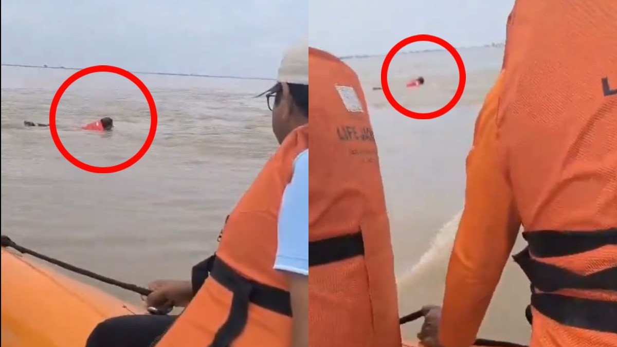 Bihar: While inspecting a collapsed embankment in Bhagalpur, Katihar's Chief Engineer was swept away by the Ganga River. The SDRF team quickly rescued him, and he is safe pic.twitter.com/3sFj7bJRIE