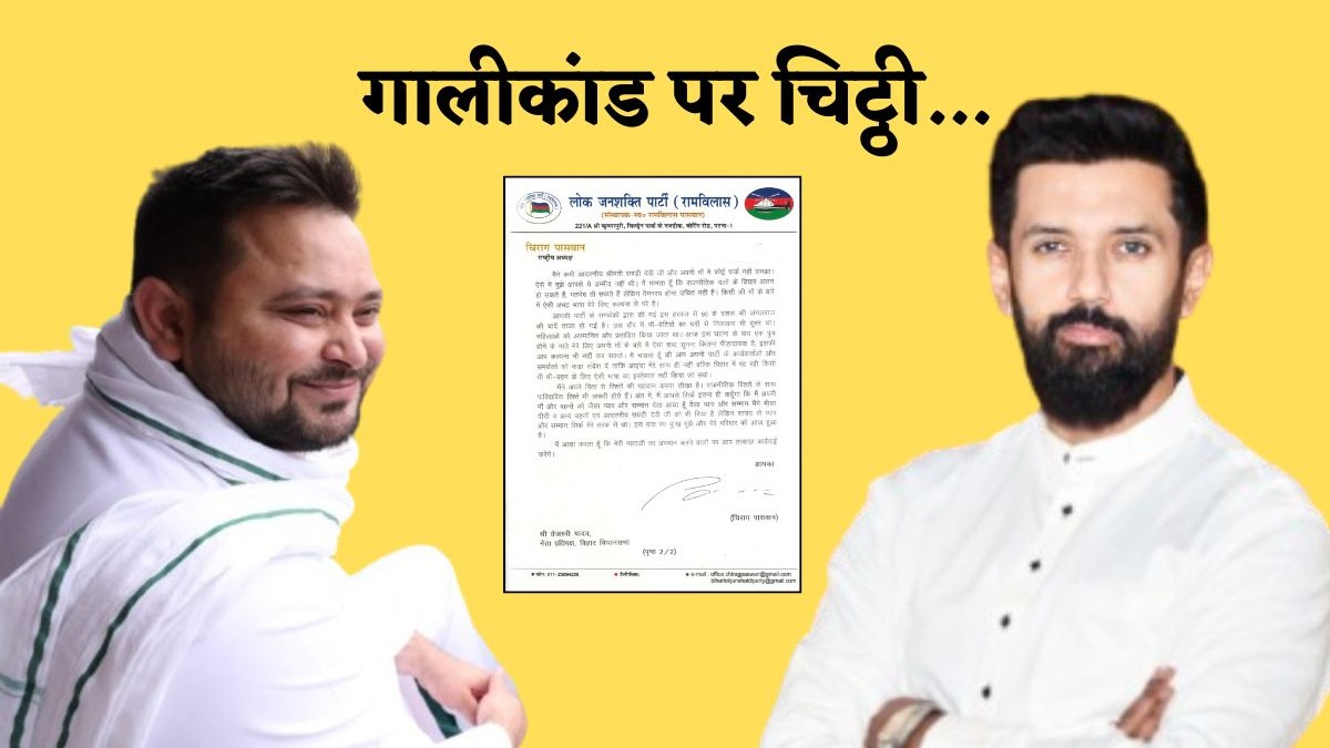 Chirag Paswan Wrote Letter to Tejashwi Yadav: सांसद चिराग पासवान ने शुक्रवार, 19 अप्रैल को तेजस्वी यादव को लेटर लिखा है। जिसमें उन्होंने कहा, 'आपकी पार्टी के समर्थकों द्वारा की गई इस हरकत से 90 के दशक की जंगलराज की यादें ताज़ा हो गईं।'
