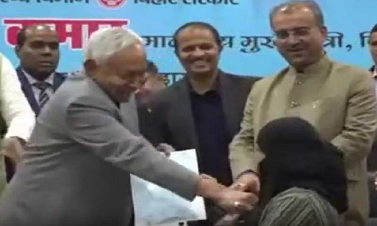 बिहार के मुख्यमंत्री नीतीश कुमार एक बार फिर विवादों में बुरी तरह से घिर गए हैं। सोमवार को पटना स्थित मुख्यमंत्री आवास पर आयोजित एक सरकारी समारोह में नव नियुक्त आयुष डॉक्टरों को नियुक्ति पत्र वितरित किए जा रहे थे। इस दौरान एक मुस्लिम महिला डॉक्टर नुसरत परवीन मंच पर अपना नियुक्ति पत्र लेने पहुंचीं। वे हिजाब पहने हुई थीं, जो उनके चेहरे को आंशिक रूप से ढके हुए था।