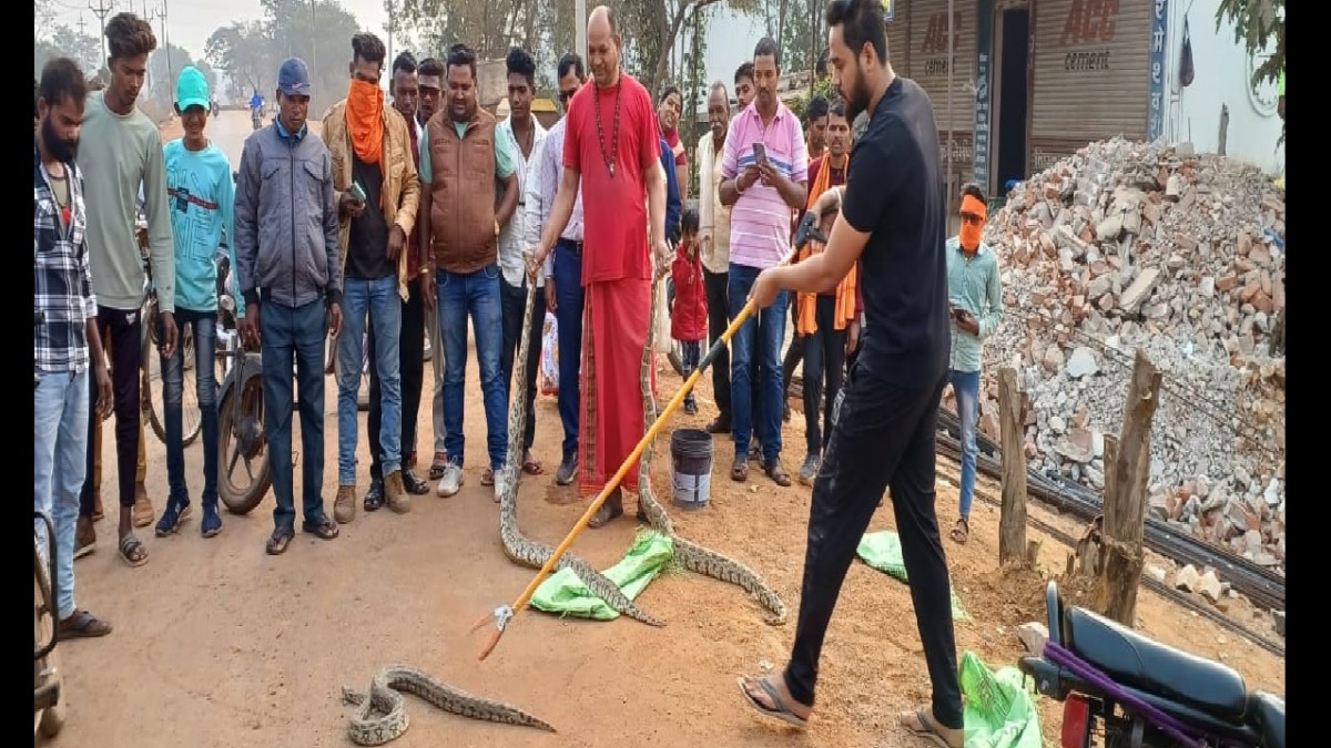 नवापारा में एक साथ 3 अजगर पकड़े गये हैं, सांप देखने के लिए भीड़ लग गई। बाद में तीनों को रेस्क्यू कर वन विभाग के हवाले कर दिया गया।