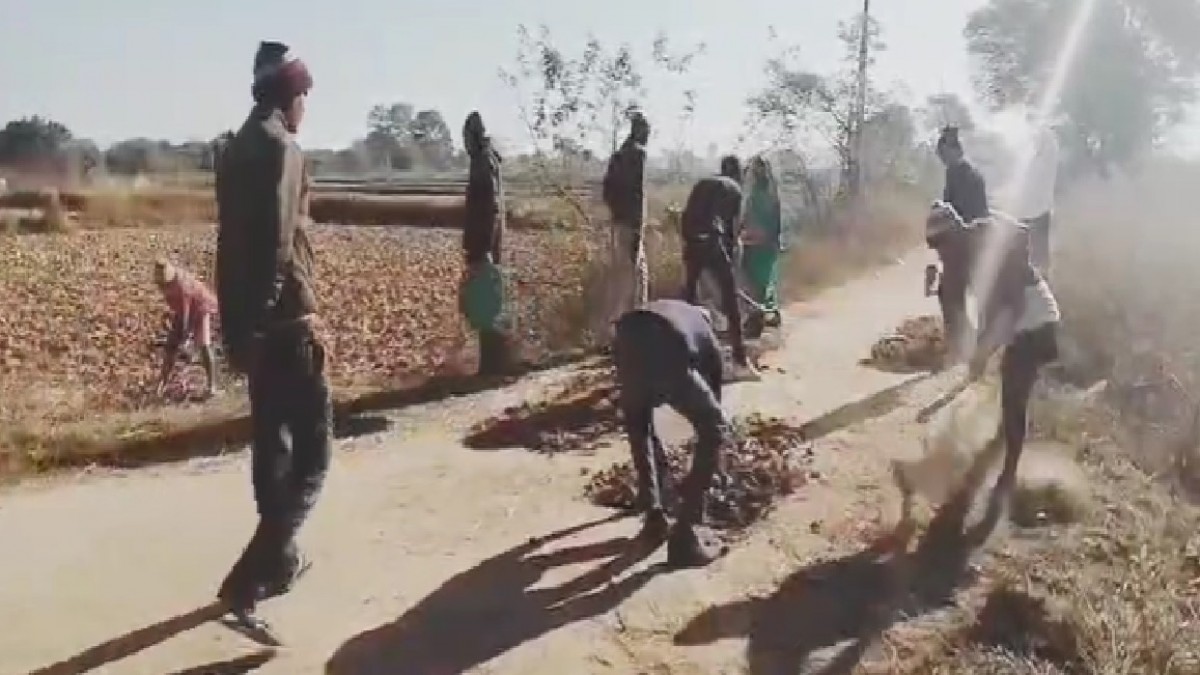 खुद ही सड़क बना रहे ग्रामीण : बच्चे, बूढ़े और महिलाएं बना रहे हैं सड़क, बोले- अक्सर होते रहती है दुर्घटना...