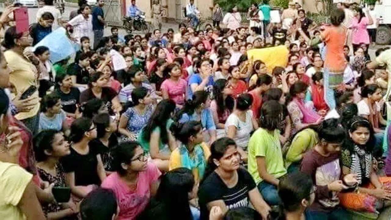 आयुष विश्वविद्यालय में बीएएमएस यानी बैचलर इन आयुर्वेदिक मेडिसिन एंड सर्जरी के फाइनल ईयर के छात्र शुक्रवार को विवि के गेट के पास धरने पर बैठ गए।