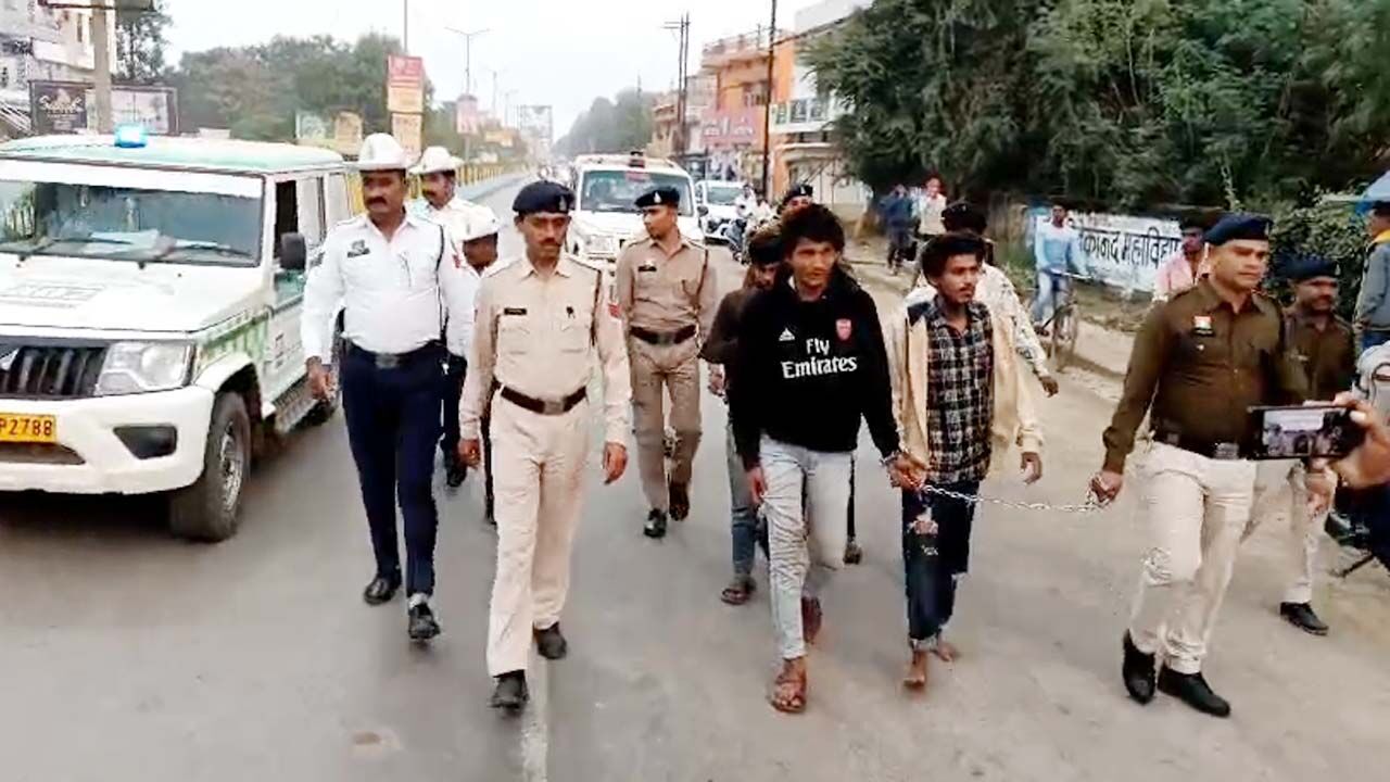 चाकूबाजी और लूट के 6 आरोपी गिरफ्तार: पुलिस ने निकाला जुलूस, SP भावना बोलीं- असामाजिक तत्वों को बख्शा नहीं जाएगा