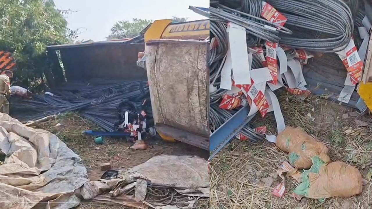 ट्रक पलटा और खुल गई पोल: छड़ के बीच छुपाकर हो रही थी गांजा की तस्करी, ले जा रहे थे प्रयागराज