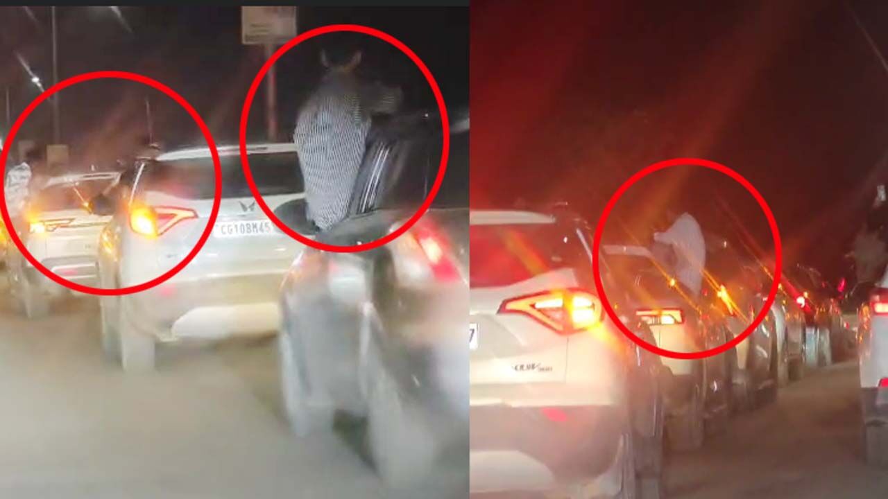 पंकज गुप्ते- बिलासपुर। छत्तीसगढ़ के बिलासपुर में मस्तूरी रोड पर ट्रैफिक नियमों और हाईकोर्ट के आदेश की धज्जियां उड़ाते हुए रील बनाने वाले बाज नहीं आ रहे है। 15 से 20 कार में स्टंटबाज चलती कार से बाहर निकलकर रीलबाजी कर रहे थे। जिसका वीडियो तेजी से वायरल हो रहा है।