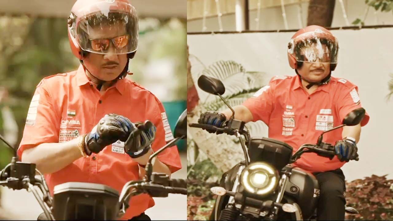 स्पोर्ट्स लुक में हेलमेट-गागल पहनकर चलाई बाइक