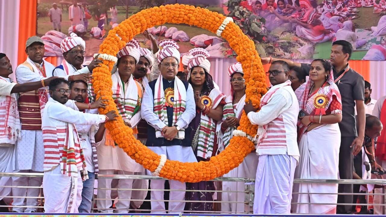 सोहरई करमा महोत्सव में सीएम विष्णुदेव साय का स्वागत सम्मान
