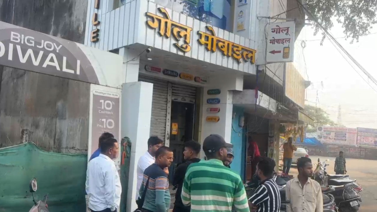 मोबाइल दुकान के चोरी के बाद उमड़ी लोगों की भीड़