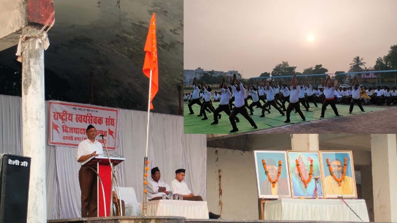 मुख्य वक्ता डॉ. पूर्णेंदु सक्सैना, डायरेक्टर वी वाय हॉस्पिटल रायपुर एवं क्षेत्र संघ चालक ने कहा कि, 'राष्ट्रीय स्वयंसेवक संघ का उद्देश्य व्यक्ति, परिवार, समाज और देश निर्माण है, जब परिवार मजबूत होगा, तभी समाज और देश सशक्त बनेंगे।' उन्होंने कहा कि जाति, भाषा, रंगभेद और क्षेत्रीय भिन्नता से ऊपर उठकर हमें राष्ट्रहित में कार्य करना चाहिए, साथ ही उन्होंने स्वयंसेवकों से आह्वान किया कि 'कोई आएगा, कोई करेगा' की मानसिकता छोड़कर प्रत्येक व्यक्ति को देशसेवा में स्वयं आगे आना चाहिए।
