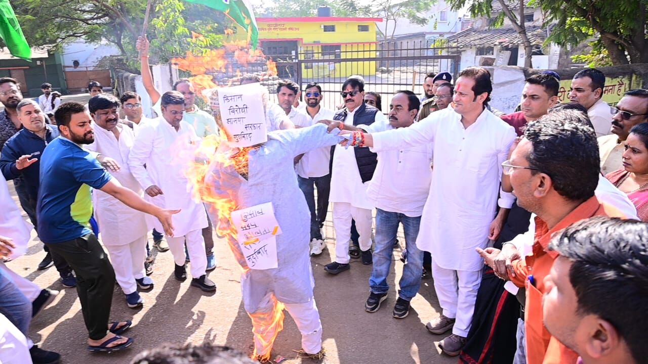 किसान ने की आत्महत्या की कोशिश: कांग्रेसियों ने फूंका सरकार का पुतला, विरोध में जमकर लगाए नारे