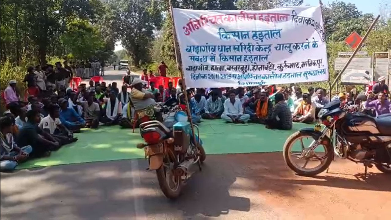 किसानों ने किया चक्काजाम: धान खरीदी केंद्र खुलवाने को लेकर अड़े, विधायक नीलकंठ टेकाम ने मांग पूरा कराने का दिया भरोसा