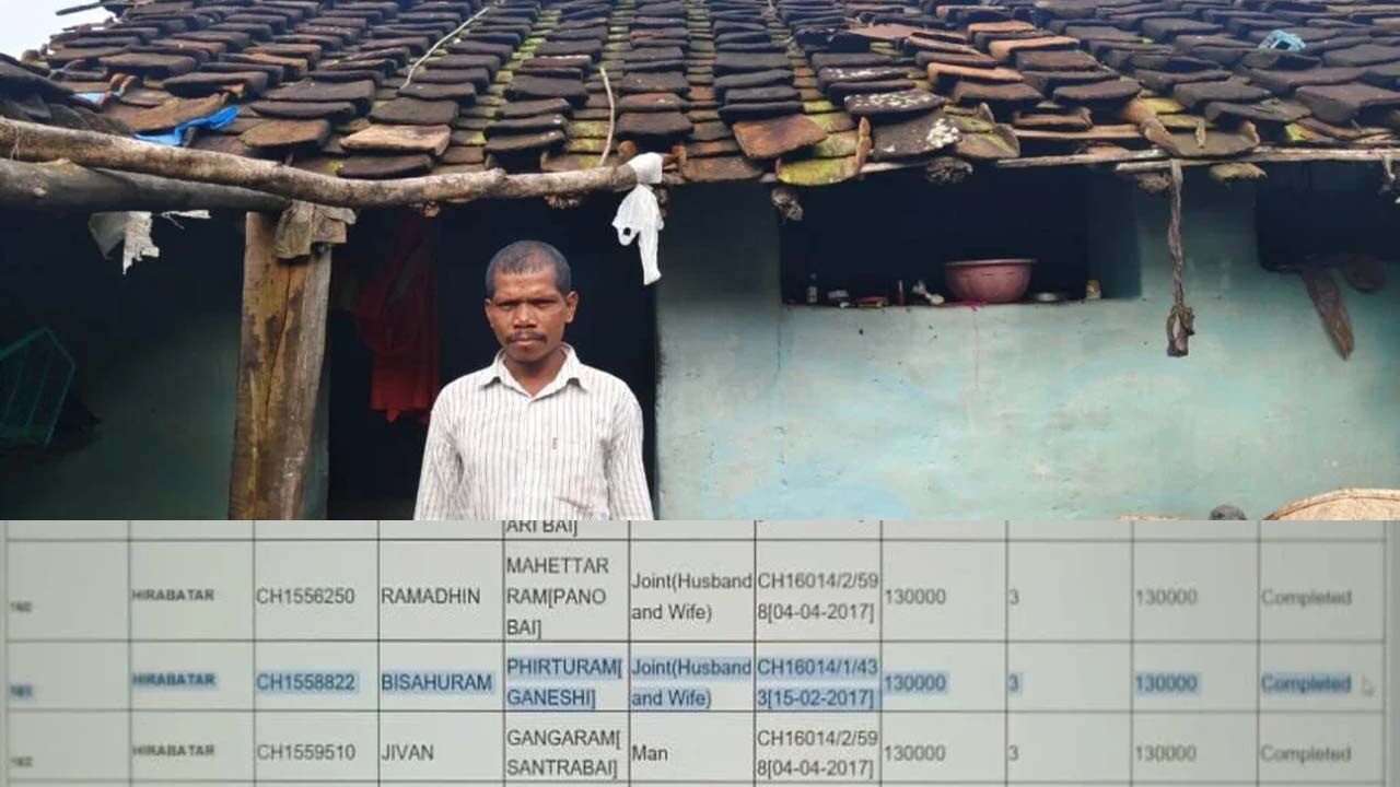 जनपद पंचायत छुरा के सरकारी दस्तावेजों के अनुसार, उन्हें तीन किश्तों में कुल 1.30 लाख रुपये का भुगतान किया गया और आवास का निर्माण भी पूरा हो चुका है। हालांकि, बिसाहू राम के बैंक खाते में फूटी कौड़ी भी नहीं आई है और न ही उनके लिए कोई आवास बनाया गया है।