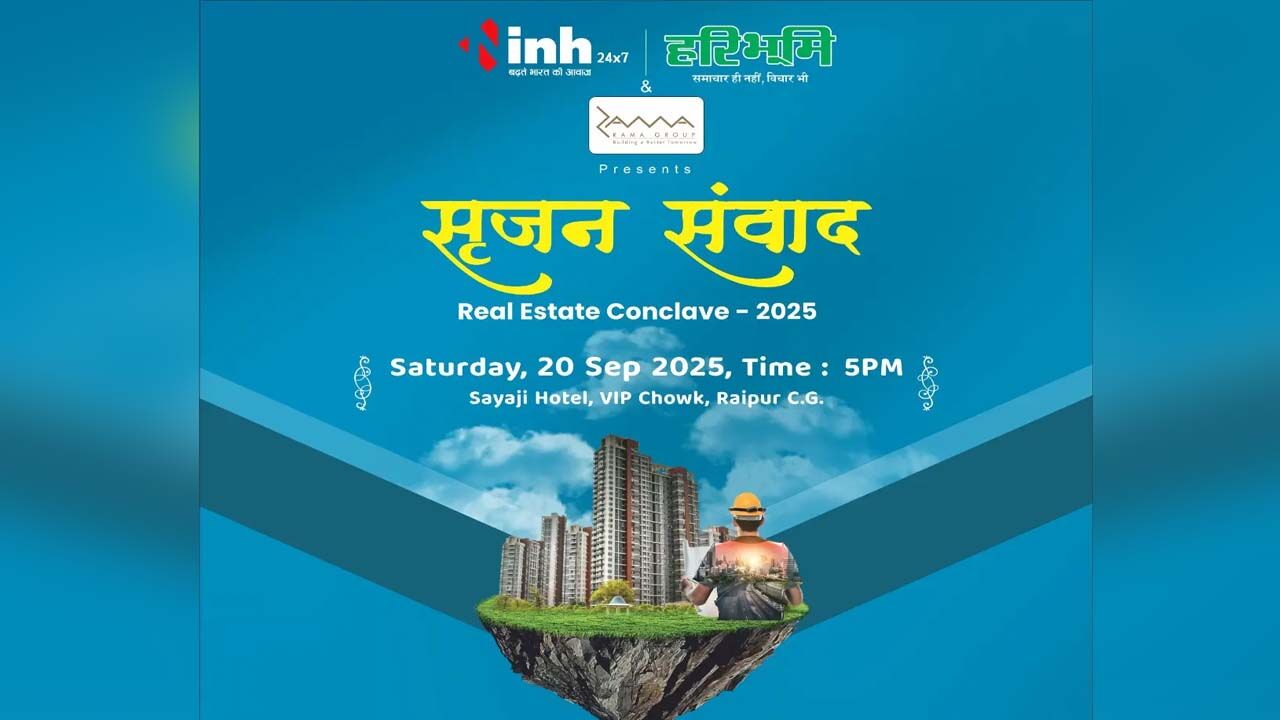 रायपुर। हरिभूमि-आईएनएच द्वारा सृजन संवाद कार्यक्रम की श्रृंखला में रियल एस्टेट कॉन्क्लेव-2025, सृजन संवाद का आयोजन शनिवार को सयाजी होटल वीआईपी चौक रायपुर में शाम 5 बजे आयोजित किया जा रहा है। आयोजन में उद्घाटन समारोह के मुख्य अतिथि छत्तीसगढ़ शासन के उप मुख्यमंत्री, लोक निर्माण, लोक स्वास्थ्य यांत्रिकी, नगरीय प्रशासन एवं विकास और खेल एवं युवा कल्याण मंत्री अरुण साव होंगे।