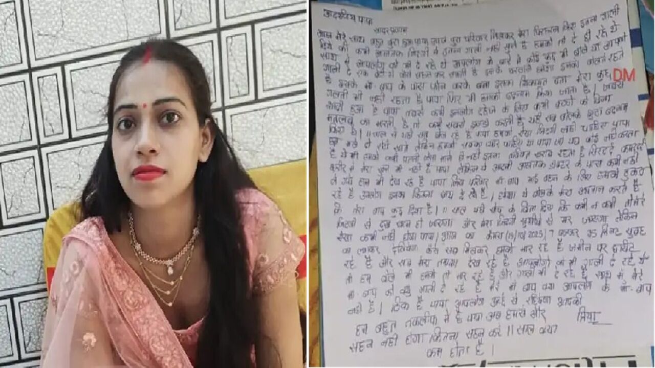 मृतका ने लिखा कि, आदरणीय पापा, मैं बहुत परेशान हूं, मुझे मेरे ससुराल वाले घसीटकर मारते हैं। दहेज के लिए भी प्रताड़ित करते हैं। आप लोगों को भी गालियां देते हैं। मुझे यहां बिल्कुल भी प्यार नहीं मिलता है और आज ये मेरा चीरहरन किए। सुबह 7:35 बजे का CCTV फुटेज देखना जिसमें सारा सबूत मिल जाएगा, पापा मैं तंग आ गई हूं। इसलिए अब बहुत दूर जा रही हूं, आप अपना ख्याल रखना।