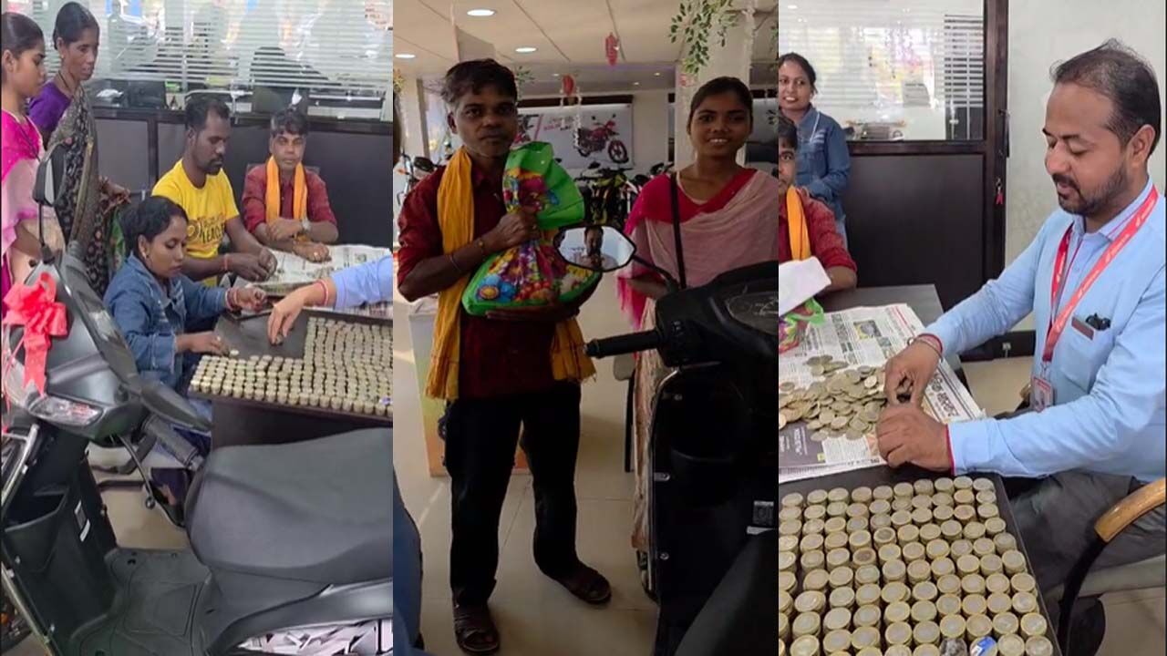 किसान के स्कूटी के लिए जोड़े 40 हजार के सिक्के गिनने जुटे शो रूम स्टाफ
