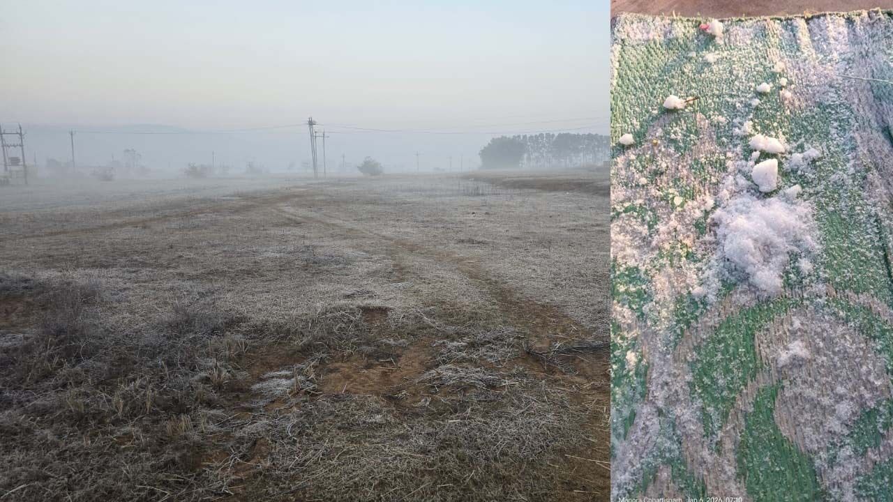 जशपुर में 2 डिग्री की ठंड से जमी बर्फ की परत