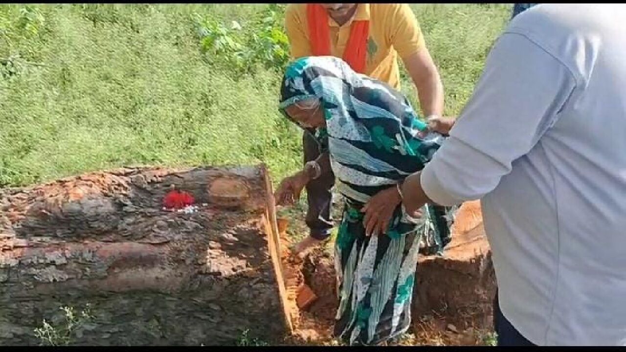 खैरागढ़ जिले में 25 साल पहले रोपे गए पीपल के पेड़ को कटा हुआ देखकर 95 वर्षीय देवला बाई रो पड़ी। जिसके बाद ग्रामीणों उसी स्थान पर दुबारा पीपल का पौधा महिला से रोपाया।