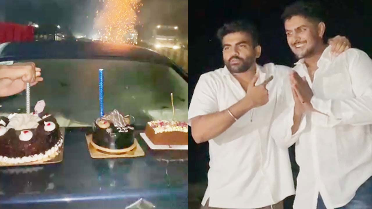 ट्रैफिक नियमों की उड़ी धज्जियां: बीच सड़क पर युवकों ने मनाया जन्मदिन, आतिशबाजी के साथ जमकर किया हंगामा