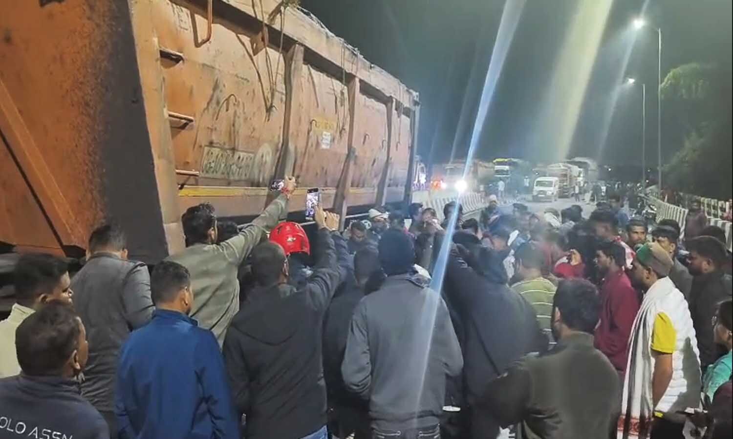 सड़क हादसे के बाद हाईवे पर भीड़