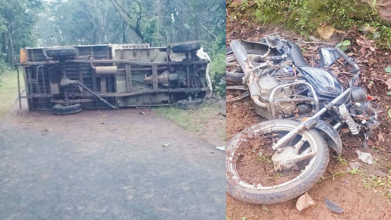हादसे में क्षतिग्रस्त हुई पिकअप वाहन और बाइक
