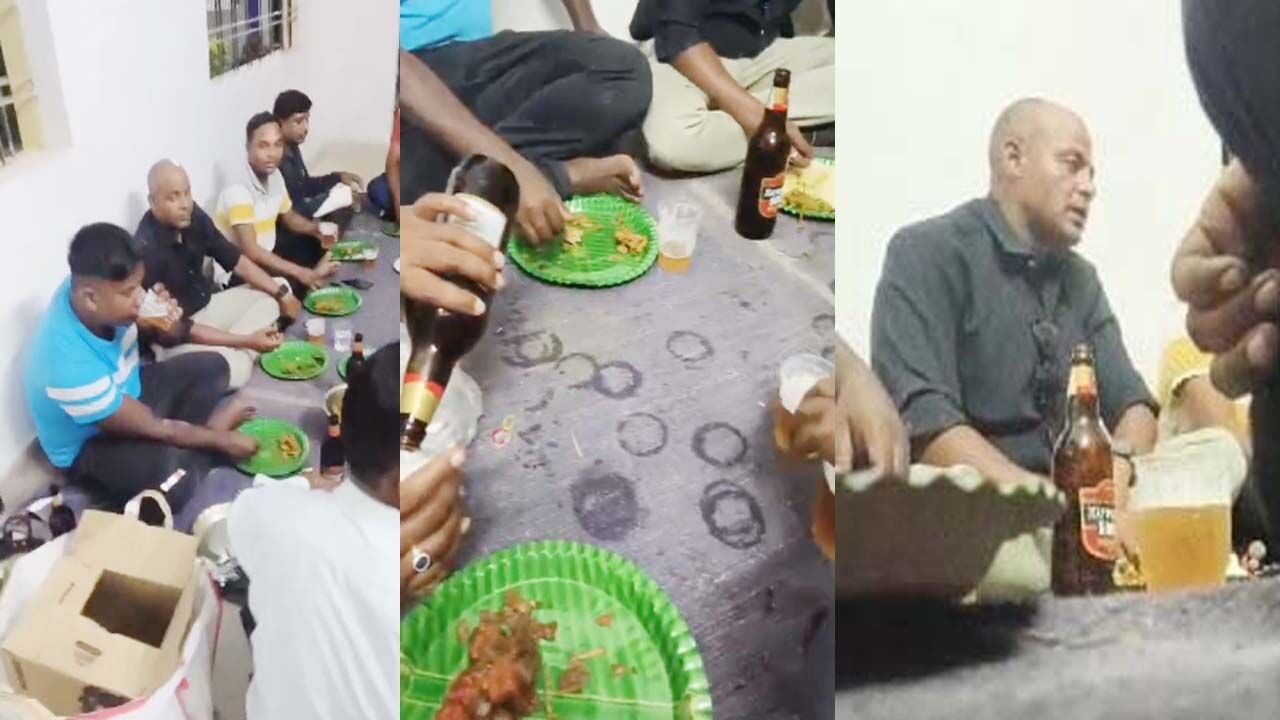 शराब पार्टी करते हुए