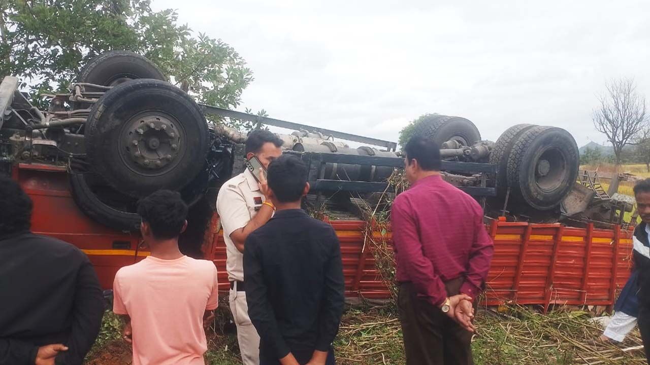 शराब से भरा ट्रक पलटा: बिलासपुर से कोरिया भेजी गई थी शराब, बैकुंठपुर के पास हुआ हादसा