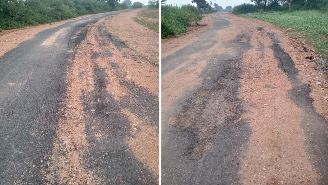9 महीने में उधड़ गई सड़क: कोल्हेंनझरिया- सहलेश मार्ग के भीतर से झांकने लगी रेत-मुरुम