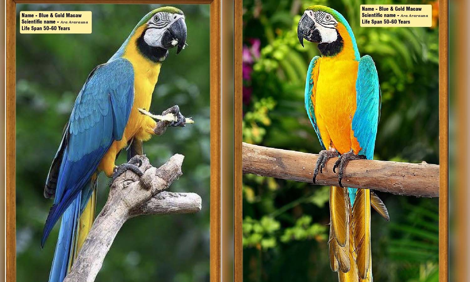 प्राप्त जानकारी के अनुसार नीला-पीला मैकॉ, जिसे आरा अरारौना भी कहते हैं, मध्य और दक्षिण अमेरिका का एक बड़ा, खूबसूरत और बुद्धिमान तोता है, जिसके शरीर का ऊपरी हिस्सा नीला, निचला हिस्सा चमकीला पीला, नारंगी और सिर के ऊपर हरा रंग होता है। यह अपनी बात करने की क्षमता और मिलनसार स्वभाव के कारण पालतू पक्षी के रूप में बहुत लोकप्रिय है, लेकिन इन्हें बहुत जगह, ध्यान और देखभाल की जरूरत होती है, क्योंकि ये लंबे समय तक (80 साल तक) जीवित रह सकते हैं। इसकी विशेषता में ऊपरी पंख गहरे नीले, पेट और छाती सुनहरी-पीली, माथा हरा, और चोंच के पास काले पंखों से सजी सफेद त्वचा होती है।