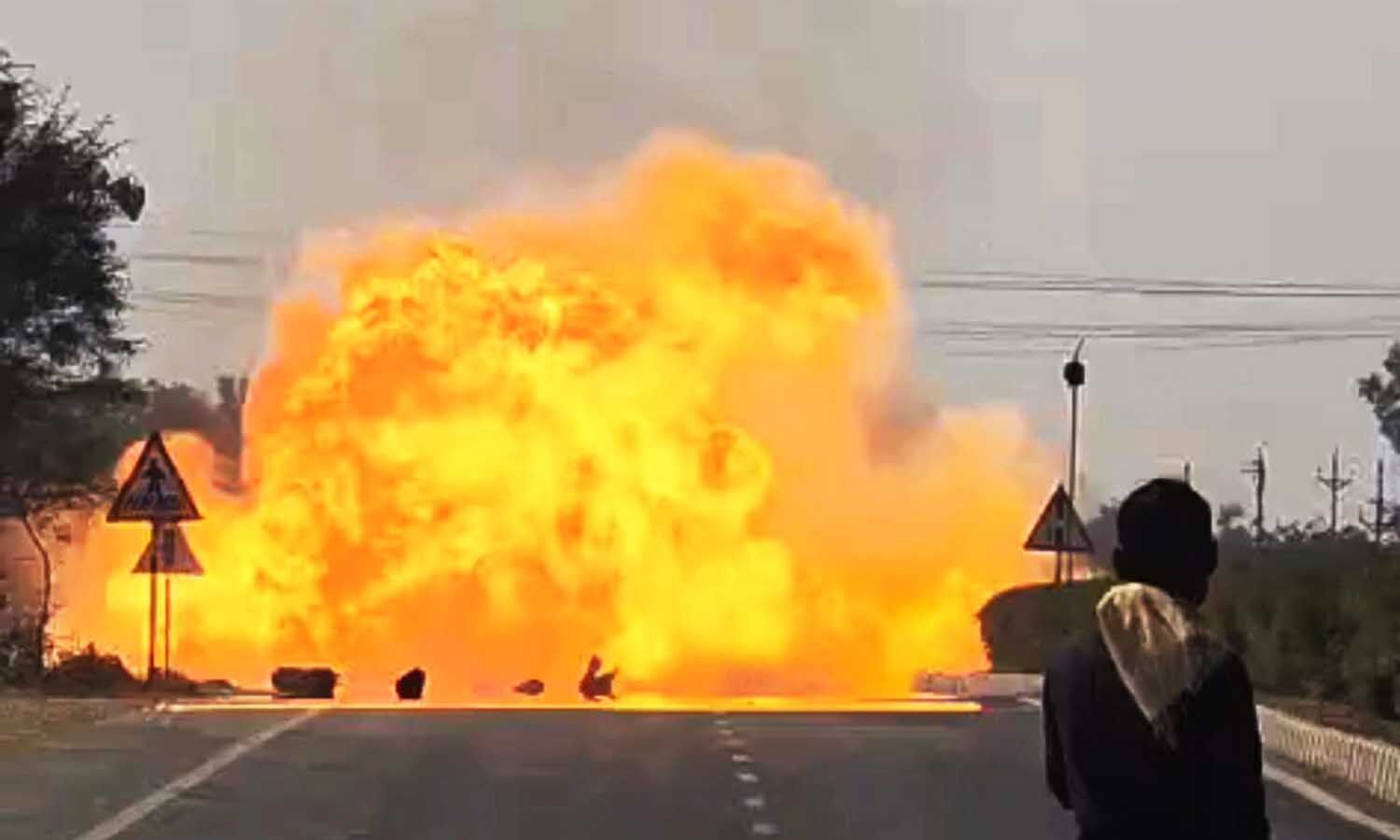 गैस सिलेंडर से भरी पिकअप में लगी आग: एक-एक कर हाईवे पर ही बम की तरह फटते रहे सिलेंडर, देखिए EXCLUSIVE VIDEO