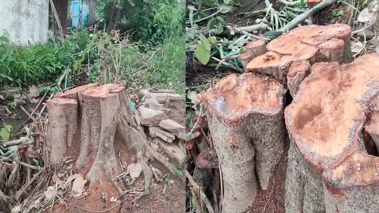 सड़क किनारे काट डाले गए बरगद के दो पेड़: सरपंच और एक सरकारी कर्मचारी की करतूत पर भड़का ग्रामीणों का आक्रोश